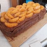 Украсьте торт: шоколадным кремом проведите полоски, цветным - сделайте листочки и цветочки. Этот торт напоминает полено, так что можно пофантазировать, в оригинале рецепта используются цукаты для украшения. У меня цвет цукатов не подходил для оформления торта, я ими посыпала после! )))