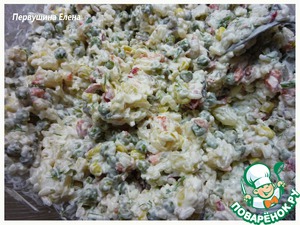 - Горошек зеленый (консервированный ) — 0,5 бан.