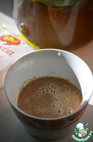 1 ст. л меда и 0,5 ст. л пивных дрожжей. Хорошо перемешать.