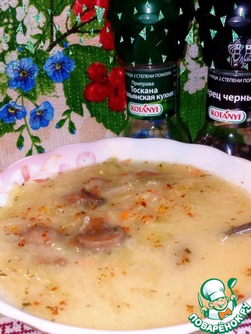 Мой первый скромный рецептик :) С лета не было времени его опубликовать. Дело было на даче у родственников, из продуктов больше всего, почему-то, оказалось лука :) Еще были сырки для супа, которые я раньше никогда не использовала. Поэтому получилась чистая импровизация, правда, достаточно удачная - дома я не раз потом готовила этот суп. Рецепт достаточно демократичный в деталях. На вкус он очень нежный, немного сладковатый.