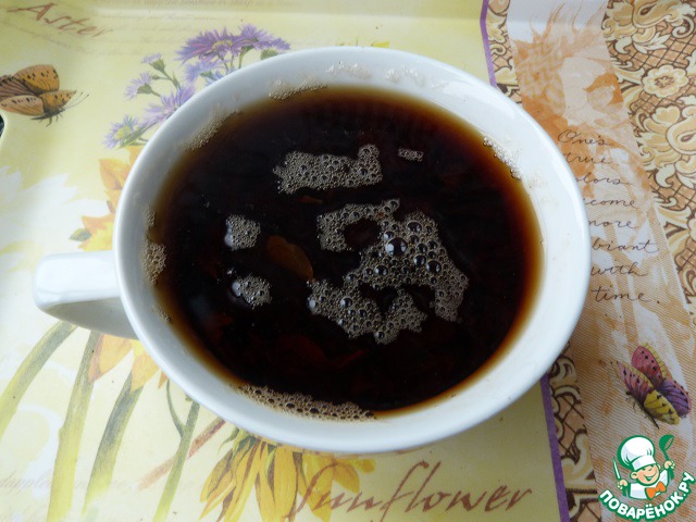В крутом кипятке заварить 1 ст. л. (с горкой) заварки. Чай должен быть не в пакетах, и без каких-либо ароматических добавок.