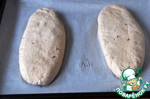 Делим тесто пополам и формируем две буханки. Укладываем полуфабрикаты на пекарскую бумагу на противень, накрываем полотенцем и оставляем на столе на расстойку на полчаса.