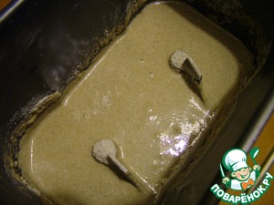 Для теста соедините опару с 250 граммами солода. Подсолите, если не любите пресный хлеб, вымесите несколько минут. Если будете печь хлеб в форме, тогда тесто можно сделать помягче - добавьте дополнительно 50-100 г воды, оно и поднимется лучше.