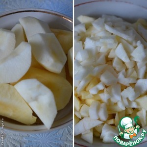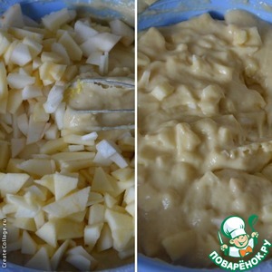 В тесто добавить цедру лимона (по желанию), нарезанные яблоки, перемешать.