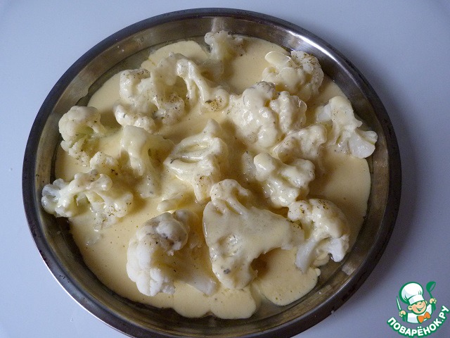 Рецепт «Цветная капуста под яйцом и сыром»: