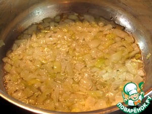 В разогретом оливковом масле обжарить лук до прозрачности,