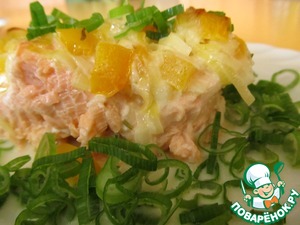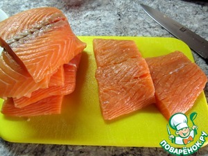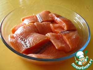 Рыбу нарезать порционными кусочками, слегка подсолить,