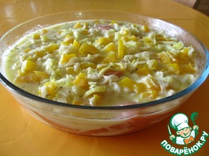 Залить соусом и поставить в разогретую до 180*С духовку.