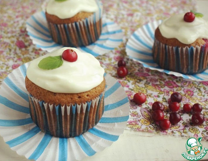 Рецепт «Клюквенные мафины со сливочным кремом»: