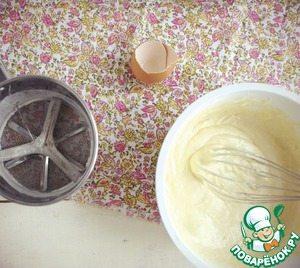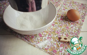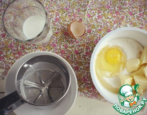• Смешайте муку, сахар, пекарский порошок, яйцо, мягкое масло, молоко.