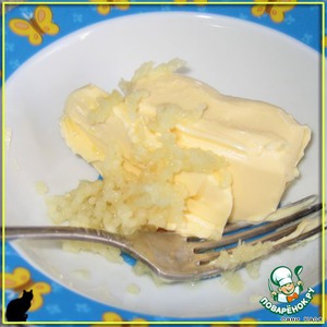 Масло оставить в тепле, чтобы стало мягким. Чеснок пропустить через пресс или натереть, смешать с маслом.