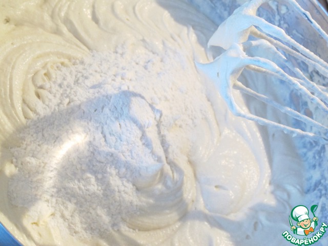 Белки снять с водяной бани и миксером продолжайте взбивать, пока они не удвоятся в размере. Около 10 минут.