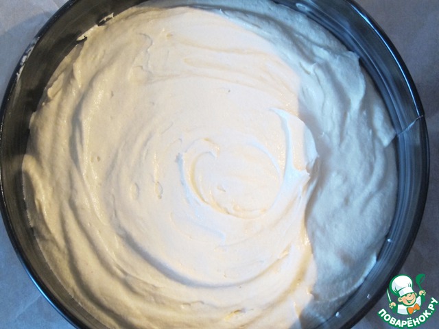 Форму со съемными бортами смазать маслом, дно застелить бумагой для выпечки. Положить в форму ровно половину теста. У меня вышло около 850 гр.