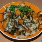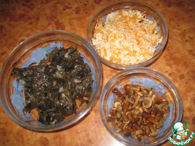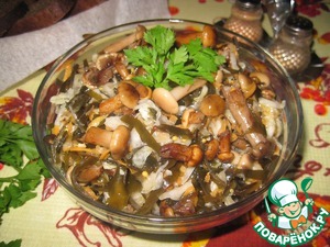 Салат из квашеной капусты, маринованных опят и морской капусты