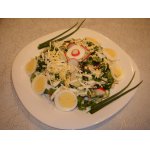 Закусочное блюдо из доступных трех основных ингредиентов. Салат очень полезен для здоровья, особенно в зимнее время года, содержит большое количество минералов, витаминов и имеет низкую калорийность. Быстро, просто, вкусно и полезно!