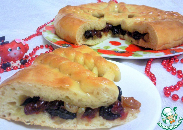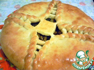 Дрожжевое тесто на сгущенном молоке. Рецепт пирога нашла в интернете, его автором является Valentina Zurkan. Вернее, рецепт скорее теста, так что названия у него не было. Но он вызвал мой интерес двумя моментами: во-первых, никогда не делала дрожжевое тесто на основе сгущенки, а во-вторых, способ формовки самого пирога. Начинка в оригинале была другая, но это и не столь важно, она может быть абсолютно разной.
