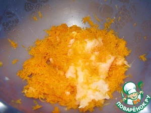 Кусочки тыквы вместе с луком пропустить через мясорубку или натереть на мелкой терке, что я и сделала.