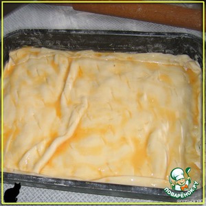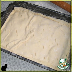 ... прикрываем вторым пластом теста. Делаем разрезики ножом для выхода пара.