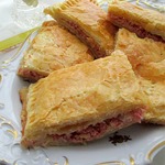 Узнала я, что вечером придут гости... а мне на работу надо. Что готовить за 30 минут? ПИРОГ! Тут главное, убегая с утра из дому на работу, переложить тесто из морозилки в холодильник для разморозки... И прикупить по дороге колбаску...