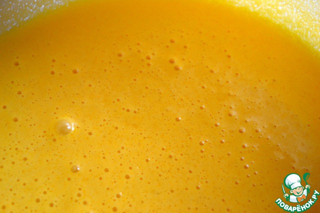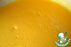 Отделить белки от желтков. Взбить немного белка, желтки и сахар.