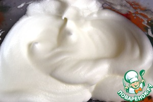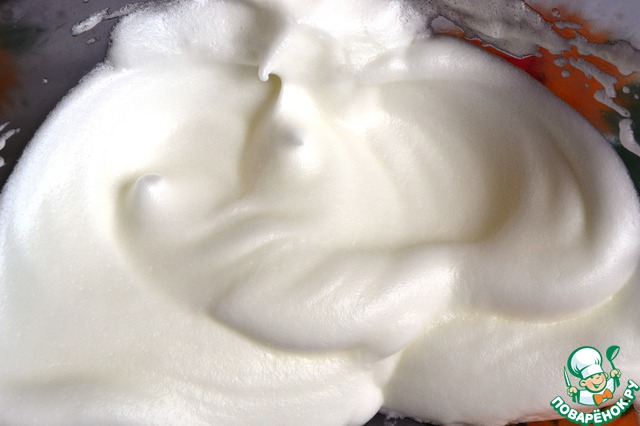 Белки взбить с солью и лимонным соком до устойчивой пены.