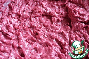 Свекольную массу смешать со взбитым маслом, перемешать. Добавить желтки, все осторожно взбить (на единичке).