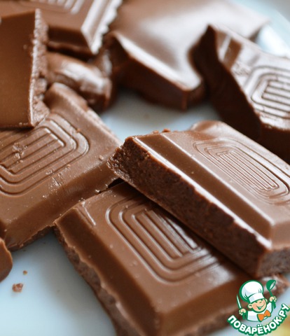 Шоколад растопить на водяной бане или в микроволновке в режиме "разморозка" 2 минуты.