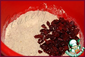 Изюм (у меня вяленая клюква) промыть. Муку просеять. -