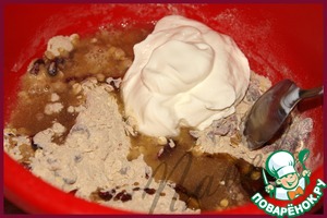 Добавляем изюм (у меня вяленая клюква), перемешиваем.