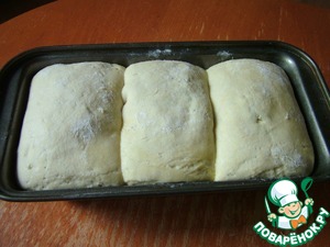 Каждую часть раскатала (растянула) в прямоугольник. Можно делать прямоугольник потолще, тогда хлеб будет "легче".