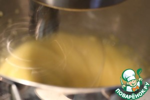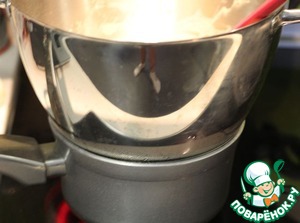 Ставим нашу желтковую массу на водяную баню и все время помешиваем, до состояния «густой сметаны»