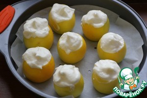 формы из лимонов, суфле. Выпекать в заранее разогретой духовке до легкой золотистой корочки и роста меренги примерно на 1,5 см. над краем формы.