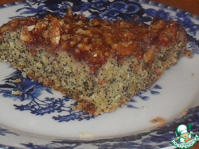 Очень простой пирог. Невесомый пушистый бисквит с крупинками мака, оттененный кисленьким соусом и дополненный хрустящими орешками - просто идеальный компаньон для стакана молока. Рецепт с сайта "Едим Дома".