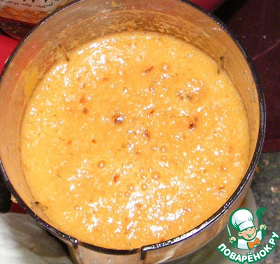 Чеснок, лук, чернослив, специи и сок отправляем в блендер или в кухонный комбайн, до однородной массы.