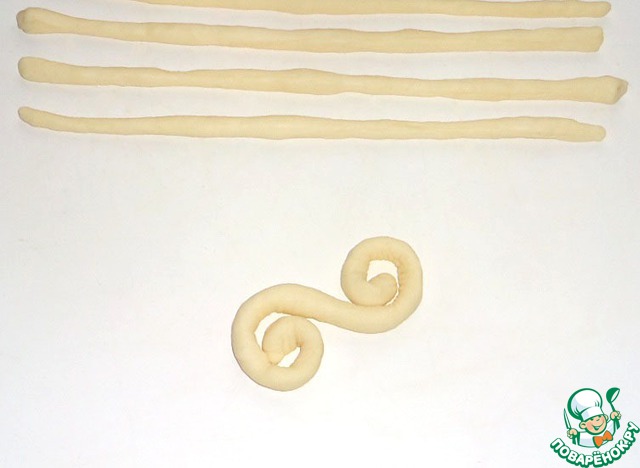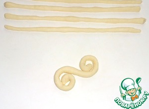 Из маленькой части теста сформировать тонкие жгутики и свернуть, как показано на фото.
