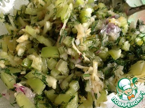 • Посолить, поперчить по вкусу, добавить масло и сахар. Укроп мелко нашинковать и все перемешать.