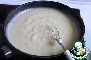 Постепенно вливаем молоко (продолжаем тщательно мешать!), а затем и овощной бульон. Если бульон не соленый - посолить. Можно приправить перцем и мускатным орехом. Еще минутку готовим соус и все, готово ;)
