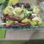 А вот и касслер, о котором я уже упомянула. В принципе, обычная подкопченная свинина, мясо не сухое. Немцы его не едят в таком виде, а по мне так оно уже готовое в принципе.. ну и ладно с ними, немцами. Продолжаем готовить:)