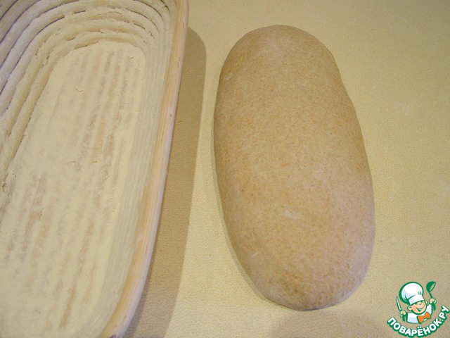 Формуем заготовку. Этот хлеб можно выпекать и в форме, тогда сделайте тесто чуть мягче, добавив дополнительно 30-50 г воды. |