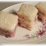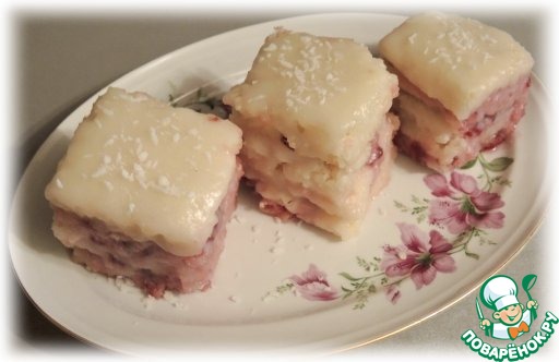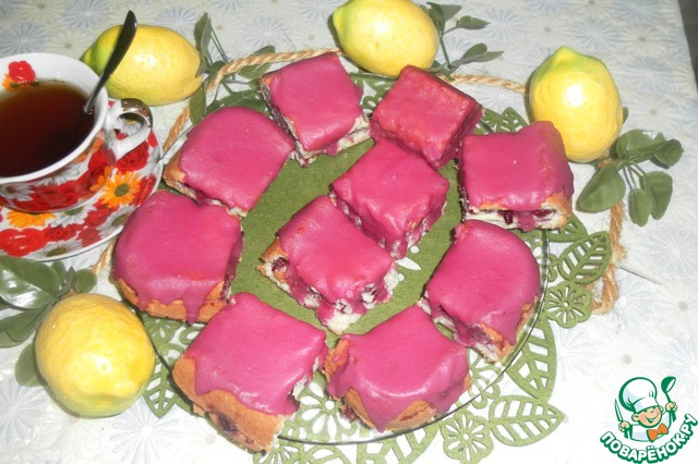 Необычайно нежное пирожное с мягким бисквитом и брусничным соусом. Попробуйте - это очень вкусно!