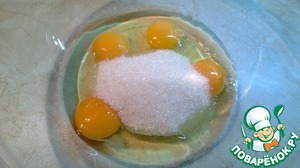 В жаропрочную миску вбить 4 яйца и 0.5 стакана сахара.