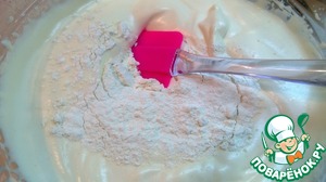 Добавьте муку. Перемешайте аккуратно лопаточкой.