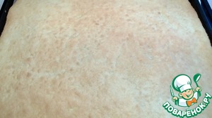 На противень (застелите пергаментом) размером 40Х30 выкладываем тесто. Тесто распределяем железным шпателем или ножом (с широким лезвием) по периметру равномерно.