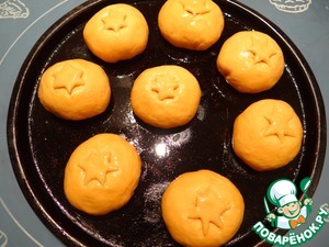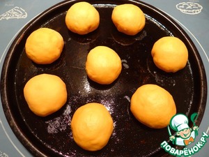 Противень смазываю маслом, перекладываю на него заготовки, накрываю пленкой и даю изделиям увеличиться в объеме в 1,5-2 раза.