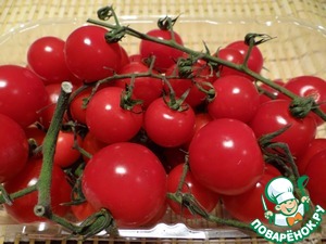 В это время мою томаты черри, а сыр режу на 8 частей.