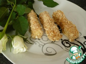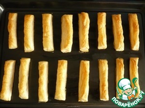 Тесто нарезать полосочками, можно немного шире сделать, кому как нравится! Выпекать в заранее разогретой духовке при 180 градусов до золотого цвета!
