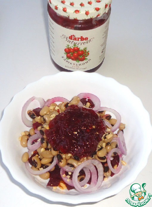 Простой и очень вкусный салат из овощей, фасоли, арахиса и клюквенного соуса ТМ "D'arbo".