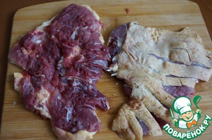Берем филе утки (у меня были ножки с бедрами, я сняла филе с кости),