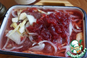 Сверху заливаем маринадом из вина с клюквенным соусом,