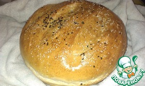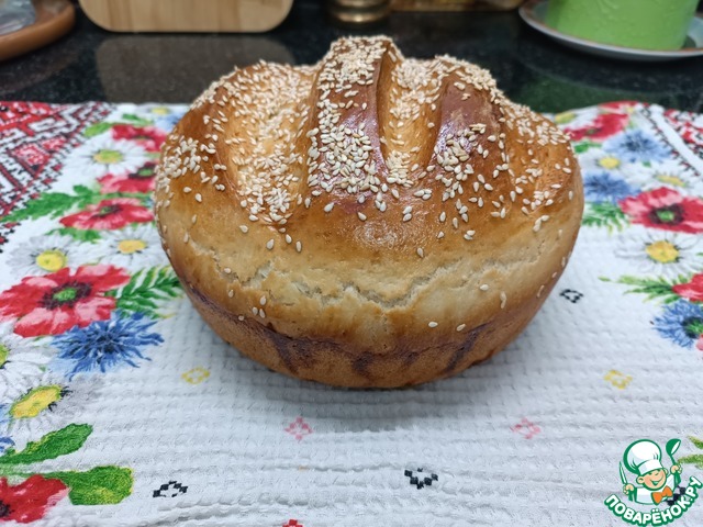 После того, как подошло тесто, смазываем еще раз желтком и посыпаем кунжутом, как у меня, к примеру. Ставим в духовку на 45 мин. -